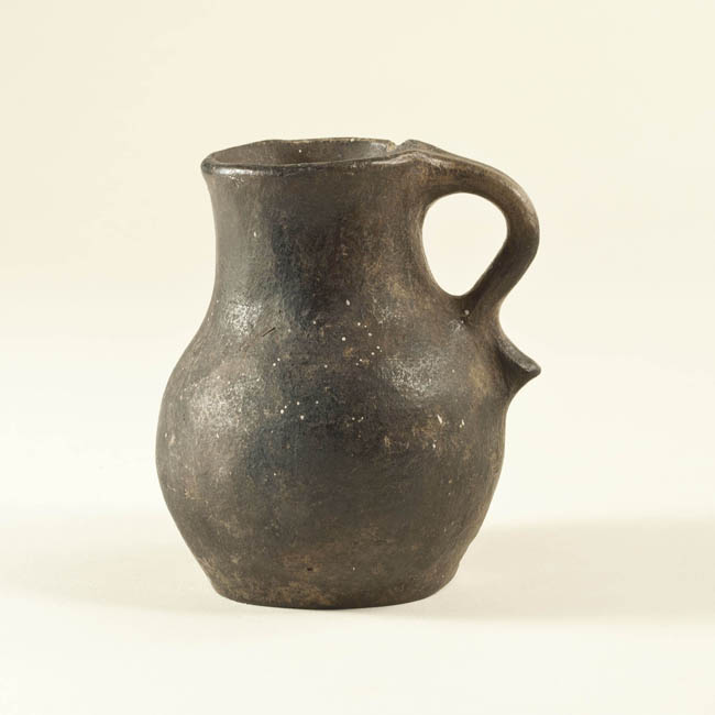 Vasija simétrica restringida de cuerpo globular. Cuello y perfil inflectado, de labio plano y borde evertido. Posee un asa cinta de sección elipsoidal que comienza en el borde y se extiende hasta el inicio del cuerpo. Presenta una base de forma circular plana. De color negro