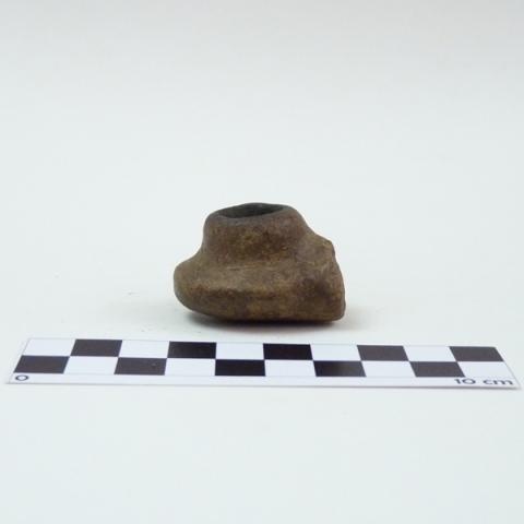 Hornillo ubicado al centro del cuerpo, de forma cilíndrica, borde recto y quemado por uso.