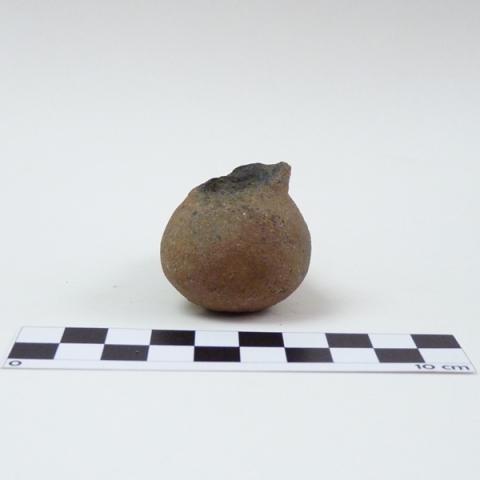Hornillo ubicado al centro del cuerpo, de forma cilíndrica, gran parte del borde ausente por desprendimiento de