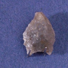 Fragmento de artefacto lítico, posiblemente una punta lanceolada, confeccionada en limolita, de color café gris, de acabdo semi brillante. Cronologia y territorialmente no se puede asociar a período o área geográfica determinada.