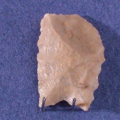 Previamente la pieza fue identificada como raspador pero, segun revision experta de la arqueológa Mariana Sacchi (2205), se identificó como una punta de poryectil.