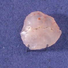 Artefacto litico elaborado en roca calcedonia de color blanco traslúcido, de acabado brillante. Su temporalidad puede corresponder al holoceno y su pertenencia geográfica a las estepas y bosques patagónicos.