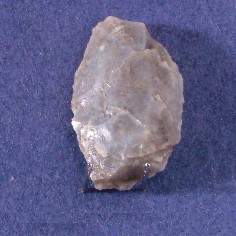 Artefacto lítico sin terminar, confeccionada en cuarzo, blanco gris semi brillante. En los bordes se aprecian lascados incompletos que se pueden asociar a errores de talla. Cronologica y territorialmente no se puede asociar a período o área geográfica determinada.
