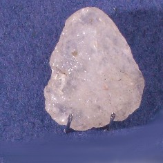 Herramienta lítica, confeccionada en cuarzo, de color blanco traslúcido, de acabado brillante. Su forma es de una punta apedunculada triangular, posiblemente es una punta de flecha. Su punta esta muy roma o embotada. Cronológicamente no se puede asociar a un período o área en particular.