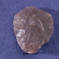 Herramienta lítica, confeccionada en roca calcedonia de color café rojizo, levemente traslúcido y de acabado brillante. Su forma es de una punta apedunculada, reactivada a partir de un posible perforador. Cronológica y territorialmente mente no se puede asociar a un período o área en particular. Presenta un lascado en el extremo distal, posible resultado de un golpe de buril.