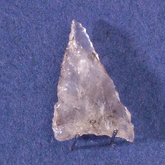 Herramienta lítica confeccionada en vidrio volcánico, traslúcido. Por su forma corresponde a una punta de flecha diseñada con base concava. Cronológicamente su asociación es variable y no se puede adscribir a un área geográfica determinada.