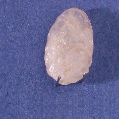 Herramienta lítica en proceso de confección, trabajada en cuarzo blanco, traslúcido, de acabado brillante. Posiblemente es una preforma de punta de proyectil. No se puede identificar su contexto cronológico ni territorial.