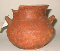 Vasija en el límite de lo restringido no restringido, con cuello de perfil inflectado, cuerpo elipsoidal y cuello hiperboloide de borde evertido y labio plano. Base plana con leve pedestal y dos asas en arco lisa (sección circular) emplazadas diagonalmente desde la parte superior del cuerpo y apuntqan hacia el cuello. Presenta engobe de color rojo hasta el interior del borde.