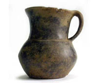 Contenedor restringido de perfil compuesto. Tiene labio redondeado, cuello cóncavo, cuerpo globular y base plana. Posee un asa cinta de orientación vertical de borde a cuerpo. Cerámica modelada, alisada y pulida de color marrón oscuro.