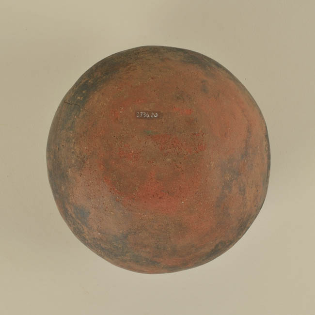 Vasija simétrica de cuerpo globular, de estructura restringida y perfil simple. Labio biselado, borde invertido, cuerpo esférico y base plana. Superficie alisada de color café.