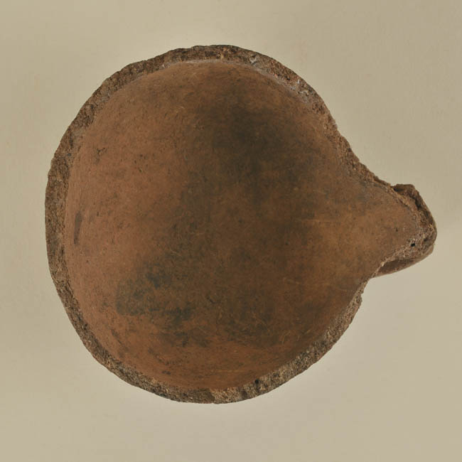 Vasija simétrica de cuerpo globular, de estructura restringida con cuello y perfil inflectado. Labio plano, borde evertido, cuello hiperboloide, cuerpo esférico y base convexa. Posee un asa de sección elipsoidal que nace en la parte media del cuello y se extiende hasta donde comienza el cuerpo. Presenta dos líneas incisas paralelas que recorren toda la superficie en torno a al cuello, una en la parte media de éste y la segunda en el punto de unión del cuello con el cuerpo. Superficie de color café.