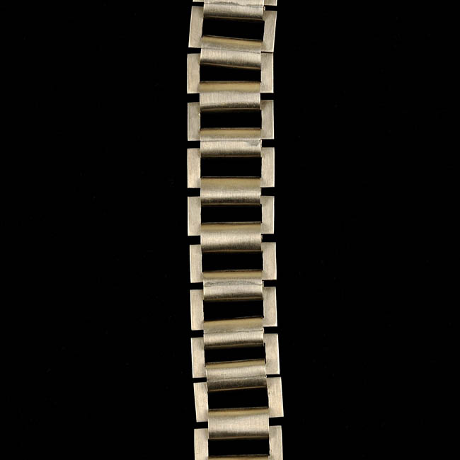 Objeto de forma rectangular oblonga, de uso personal femenino en la cultura Mapuche como prendedor central. Es de plata y está compuesta por 2 placas irregulares en la parte superior e inferior de la pieza con una cadena formada de 16 canastillos y 17 arandelas planas. La placa superior, de forma trapezoidal posee una globulación central que asemeja una concha. La placa inferior, de bordes redondeados, posee una globulación central y graficaciones con forma de estrella de 5 puntas, realizadas por medio de estampados lineales. Penden de ella, por medio de 5 arandelas de alambre, 5 pin circulares con graficaciones por estampado con diseño floral central.