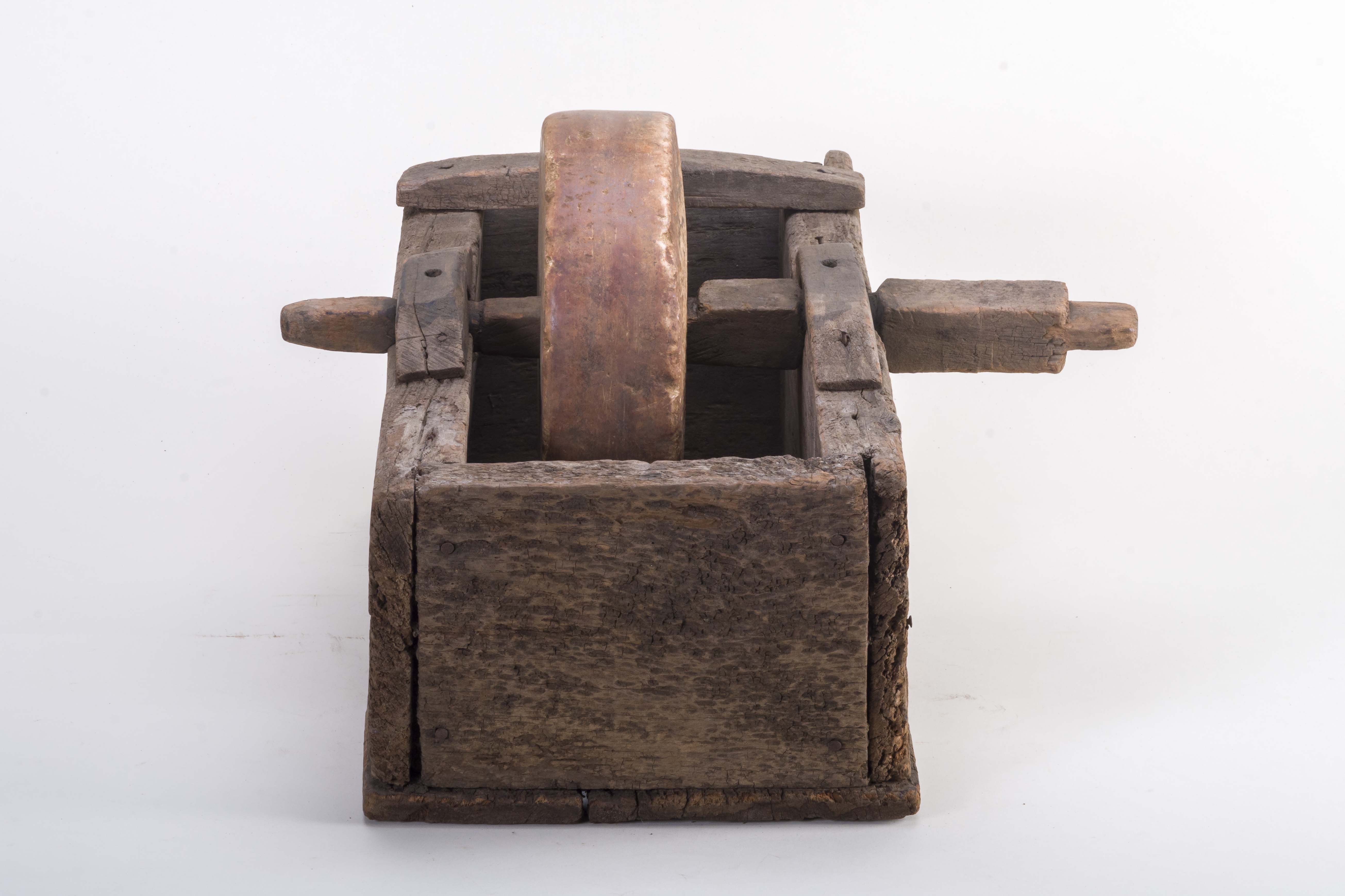 Implemento usado en la molienda. Objeto de forma rectangular hueco, con una rueda cilíndrica colocada en un eje horizontal dentro del objeto. El vástago donde va la rueda, sobresale por ambos extremos y se usa como manillas para accionarlo.