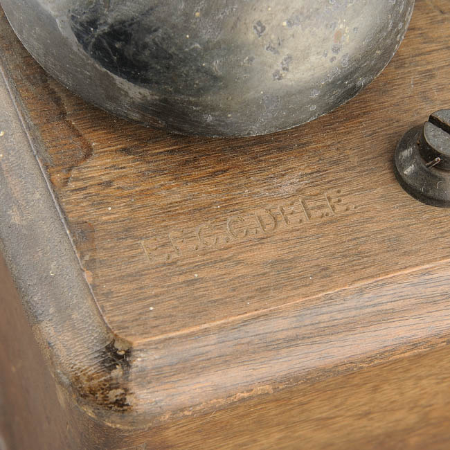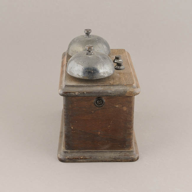 Campanilla de sistema de transmición de información. Usado en el contexto ferroviario entre otros. Elaborado con madera y metal, su forma es compuesta: la base es un prisma rectangular de madera con dos campanillas metálicas de forma de casquete esférico ubicadas en la cara superior y que terminan, cada una, con un perno y tuerca metálica. Entre las dos hay una esfera metálica pequeña. Consta además dos pernos sujetos a la base y ubicados frente a llos dos casquetes esféricos. Tiene una placa de bronce con una inscripcion grabada que dice: manufactured by the general electric co. ltd., telephone works coventry, England.