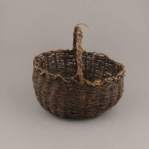 Contenedor elaborado en fibra vegetal, usado principalmente para el transporte y almacenamiento de alimentos. De forma globular abierta, con una asa tubular también de fibra vegetal amarrada de labio a labio. Color café oscuro.