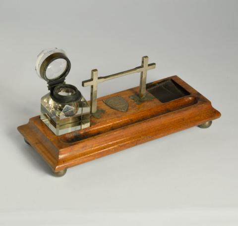 Objeto de escritorio usado para sujetar los frascos con tinta empleados en la escritura, al igual que las plumillas utilizadas con el mismo fin.