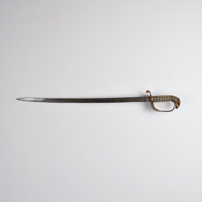 El sable para los oficiales de la Armada de Chile se reglamentó el 3 de septiembre de 1863, aunque su diseño se empleó desde antes de su reglamentación oficial. Los antecedentes más tempranos de su empleo son de la década de 1850, y aunque ha tenido variaciones, ha mantenido de modo invariable la cabeza de cóndor en el pomo y el emblema de ancla y estrella en el guardamano. Por las variaciones en su fabricación, la cabeza de cóndor ha variado, siendo a veces, la cabeza de un ave rapaz genérica, parecida más bien a un ave falconiforme. La forma del pomo de este ejemplar es posible encontrarla en sables navales chilenos fabricados hacia la década de 1850, tal vez, a fines de la década de 1840.
