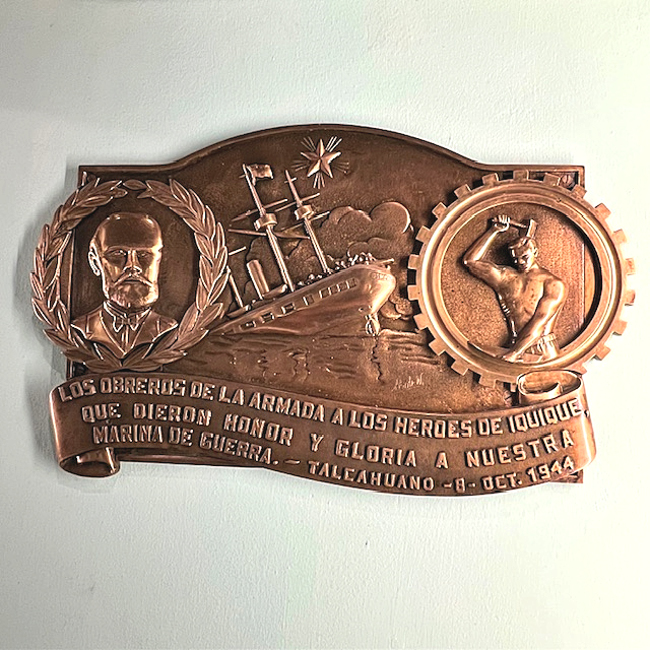 Objeto instalado en la cripta del Monumento a la Marina Nacional de Valparaíso con ocasión de la conmemoración del aniversario del combate naval de Angamos, en octubre de 1944