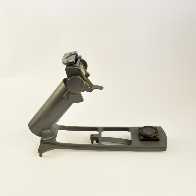 Instrumento compuesto por una base o bastidor y un tubo inclinado a 60º dispuesto longitudinalmente. El tubo tiene un lente y una aguja indicadora en su parte inferior y un prisma en la parte superior, el que se puede rotar por medio de dos perillas situadas a cada lado.