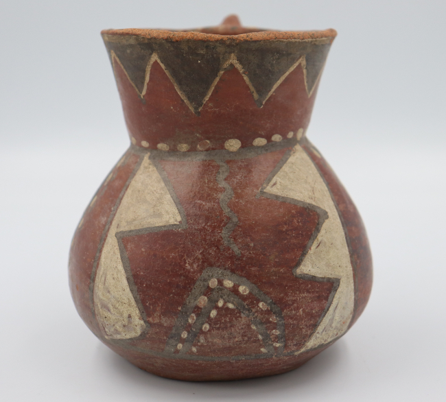 Vasija obtenida por el coleccionista Roberto Nappe y donada al museo por su hija Anelise Nappe Goldammer. Vasija perteneciente a la Cultura Chrirbaya