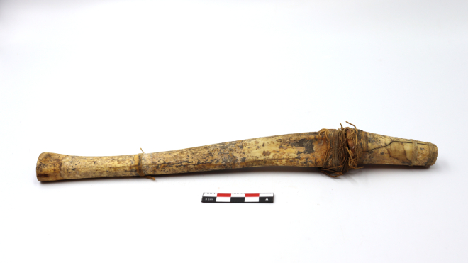 Este artefacto fue identificado como un contenedor de pigmentos elaborado en base a un hueso de camélido