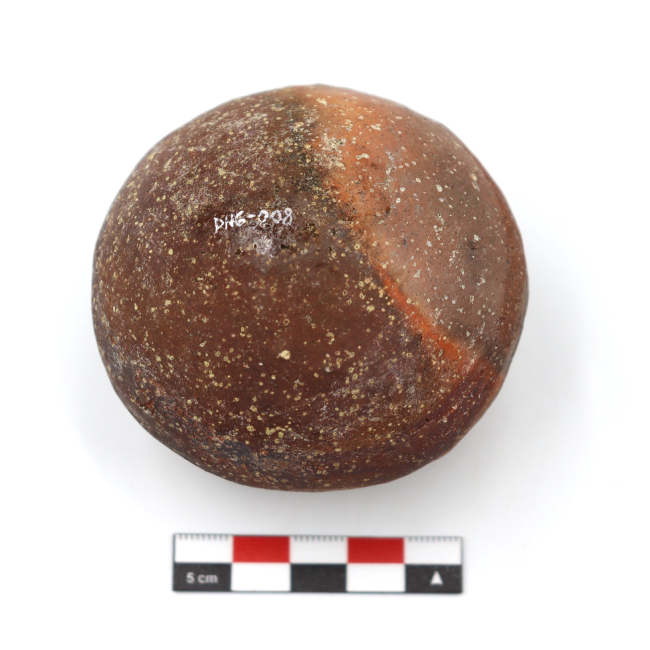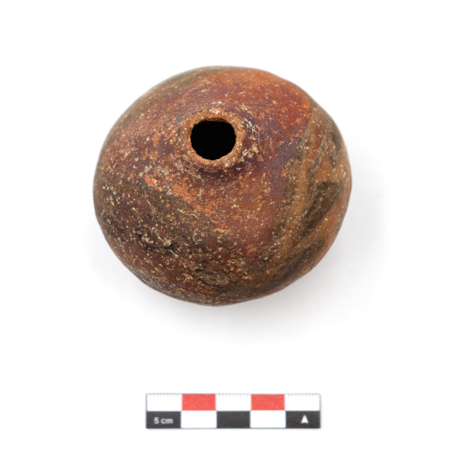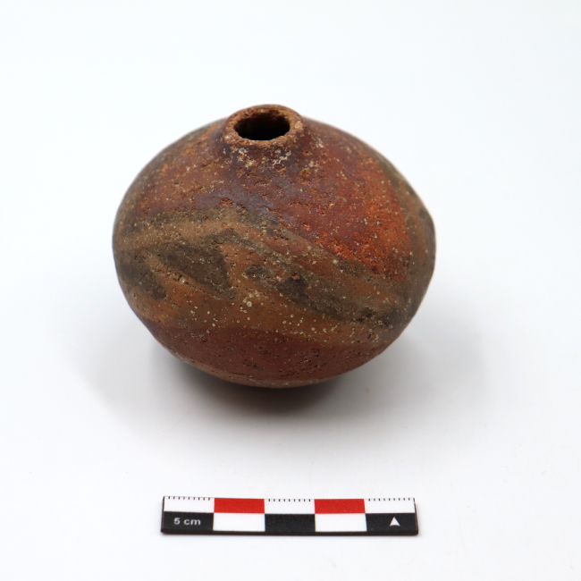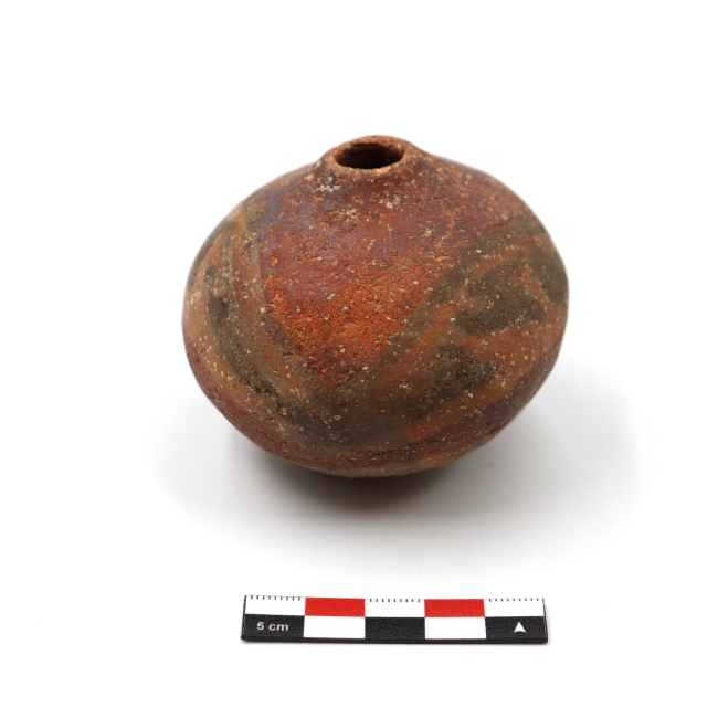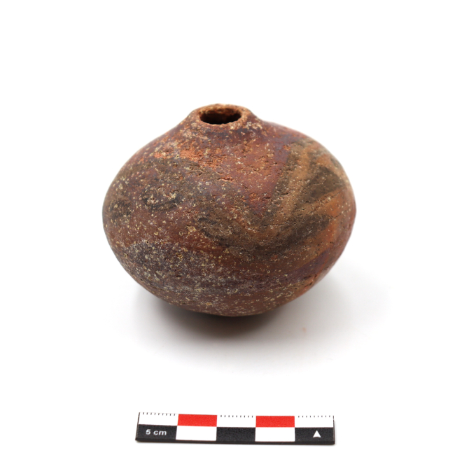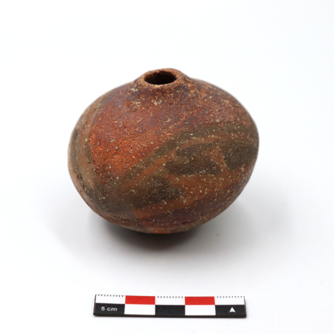 Los mates cerámicos de Arica corresponden a una forma cerámica recurrente dentro de la tradición alfarera de los Valles Occidentales, definida por Uribe (1999) como vasijas restringidas de cuerpo globular u ovoide de base apuntada. Tecnológicamente, se elaboran mediante modelado y ahuecamiento, con cocciones mayoritariamente oxidantes y superficies alisadas o pulidas. Esta vasija fue adscrita al estilo Pocoma-Gentilar por su banda anular y superficie pulida sin pintar en el diseño.