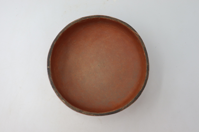 Destaca la presencia de un hiato en el diseño de la banda horizontal ubicado en lo que podríamos identificar como la parte posterior de la escudilla. Lo anterior es consistente con otras escudillas que si presentan un claro diseño frontal y que en la parte posterior presentan un espacio vacío que divide el diseño de la banda horizontal, al igual que en la presente escudilla.