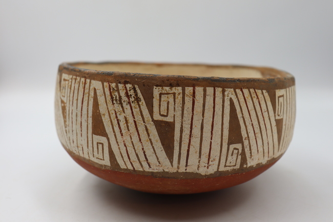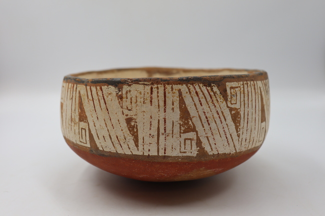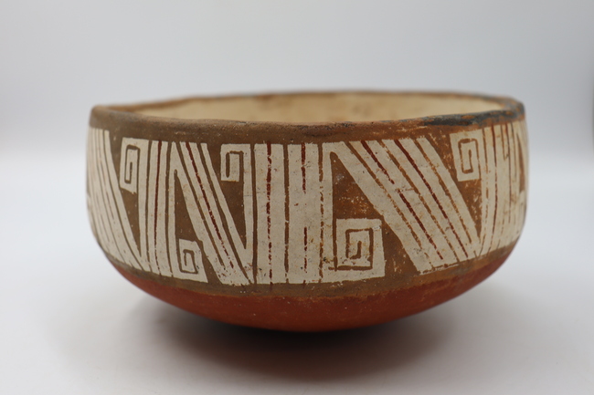 Contenedor cerámico de tipo no restringido correspondiente a una escudilla polícroma de fase Diaguita II, estilo clásico. Posee un labio recto y un borde directo. Cuenta con un cuerpo elipsoidal horizontal y una base de tipo convexo.