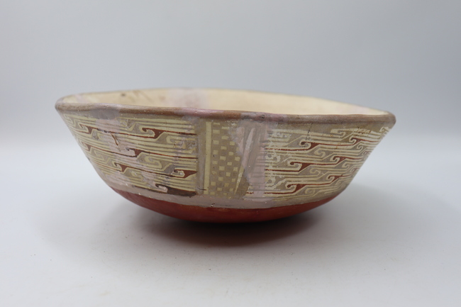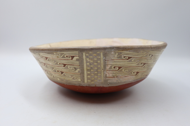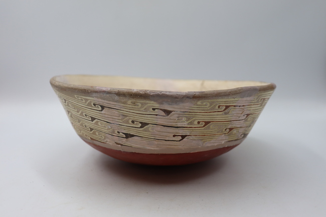 Contenedor cerámico de tipo no restringido correspondiente a una escudilla acampanada polícroma Diaguita-Inca de fase III. Posee un borde directo y un labio redondeado. Cuenta con un cuerpo elipsoidal horizontal y una base de tipo convexo.