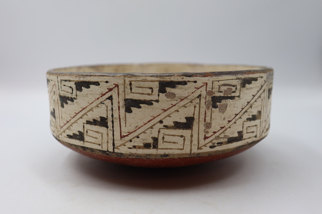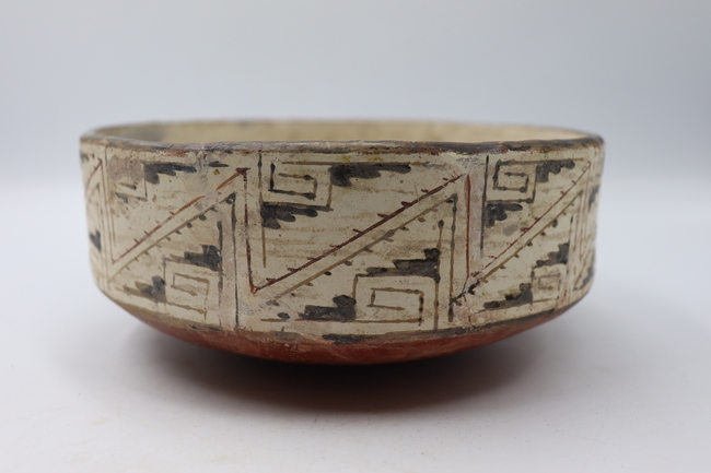 Contenedor cerámico de tipo no restringido correspondiente a una escudilla polícroma de fase Diaguita II, estilo clásico. Posee un labio redondeado y un borde recto. Cuenta con un cuerpo elipsoidal horizontal y una base de tipo convexo.