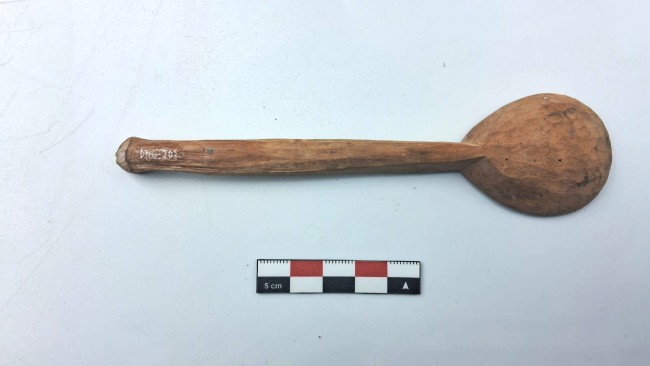 Núñez (1969) propuso una tipología para la comprensión de las cucharas de madera prehispánicas del Norte Grande de Chile. Estos tipos de cucharas se caracterizan por tener un mango planiforme que se engruesa a medida que se acerca a la pala, características que coinciden con la pieza. El autor propone que las cucharas decoradas se usarían en contextos rituales y públicos donde serían utilizadas para servir alimentos y no para el consumo personal, esto en base a la evidencia de volúmenes altos para las cucharas del Norte Grande.