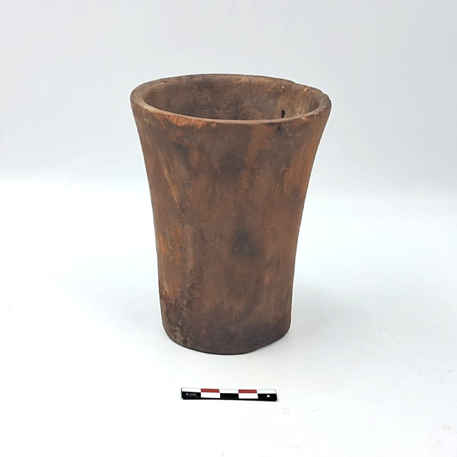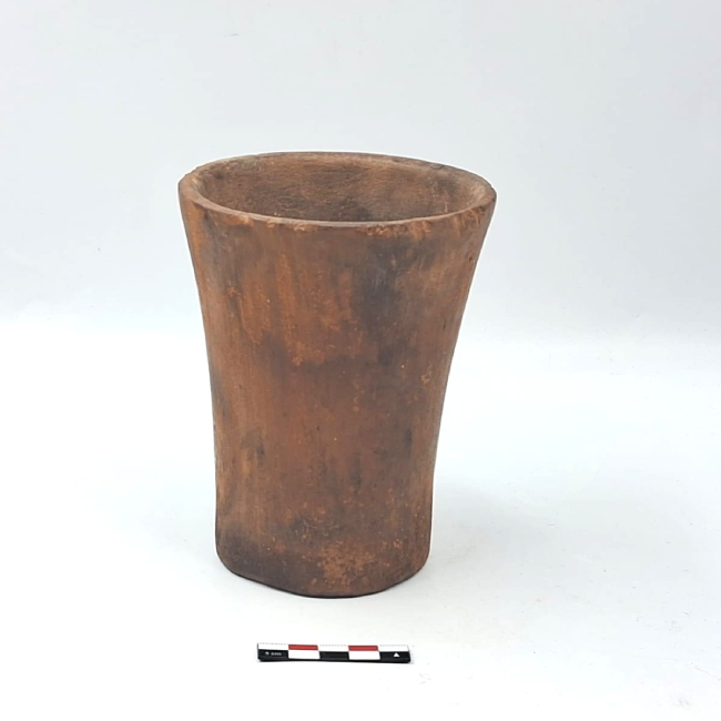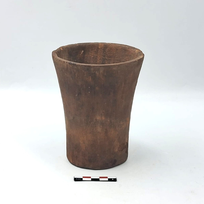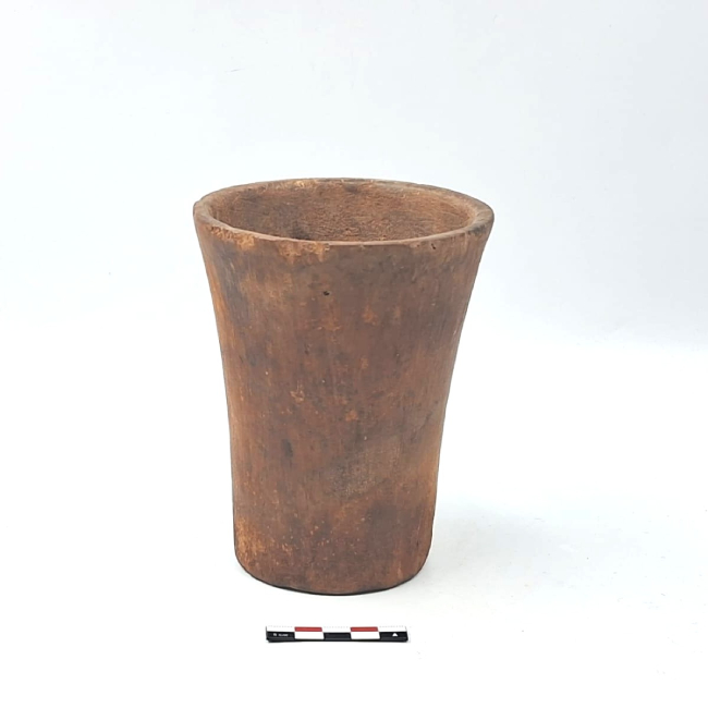 Contenedor de forma abierta y contorno simple. Presenta una forma general troncocónica invertida. Los bordes son evertidos de labio plano y la base plana. La superficie exterior fue pulida.