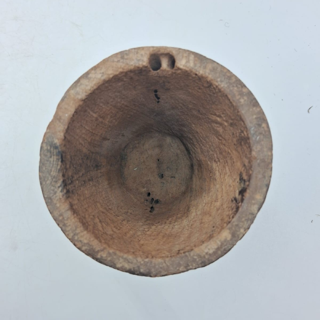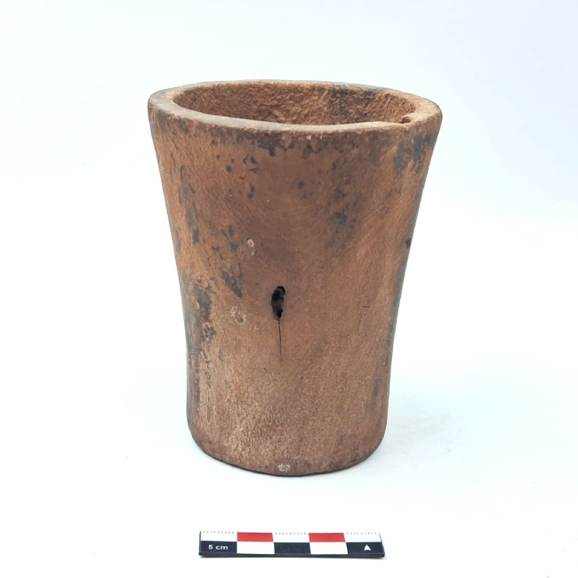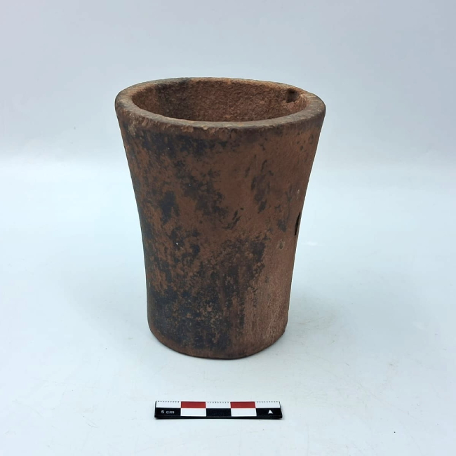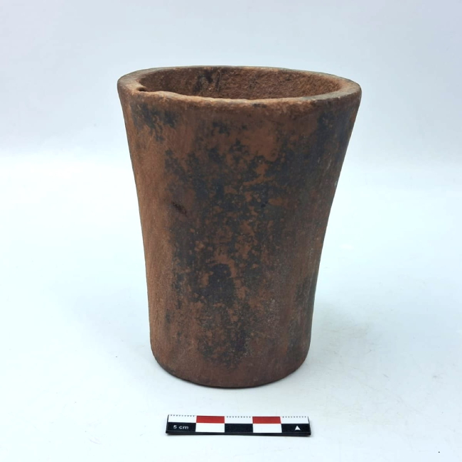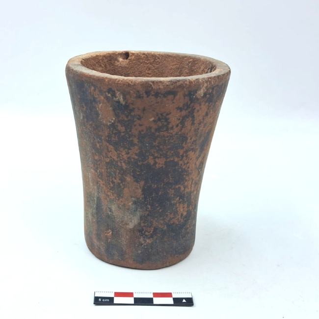 Contenedor de forma abierta y contorno simple. Presenta una forma general troncocónica invertida. Los bordes son evertidos de labio plano y la base plana. La superficie exterior fue pulida.