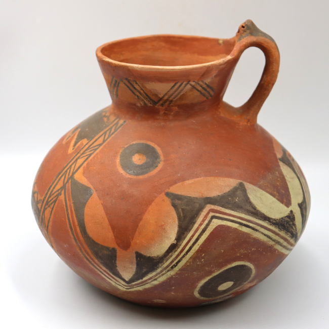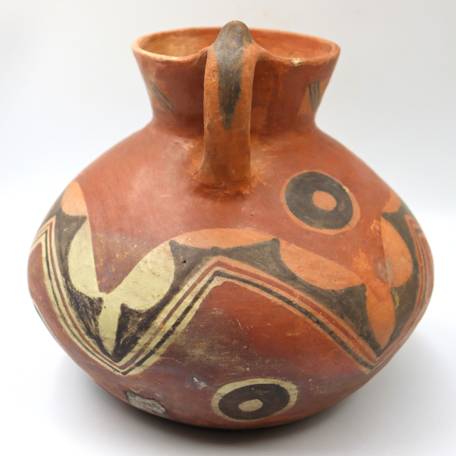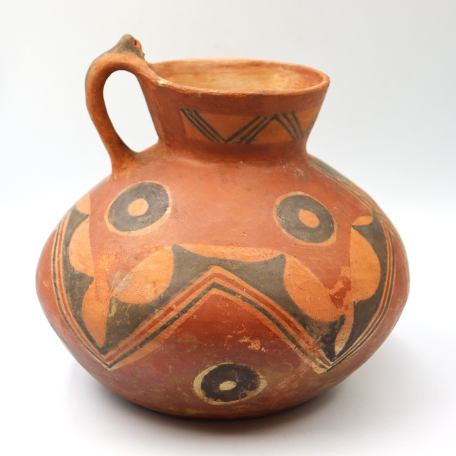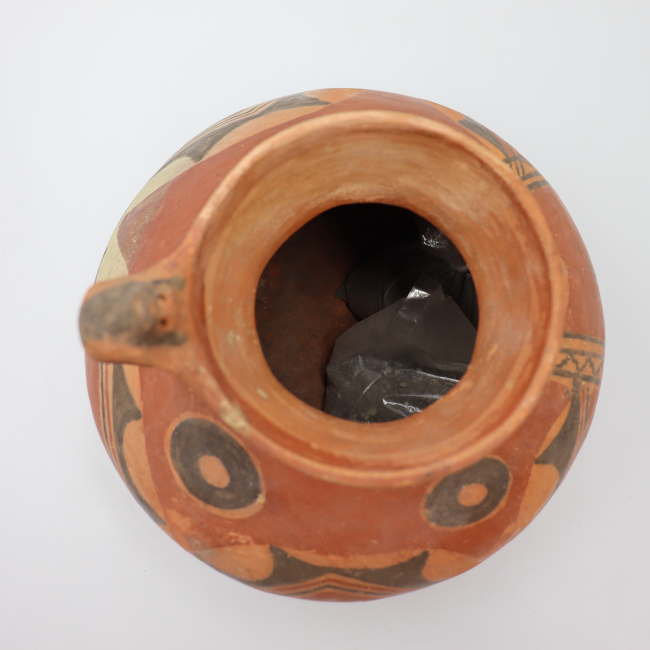 Los jarros decorados constituyen un tipo característico dentro de la arqueología del Periodo Intermedio Tardío del Norte Grande de Chile. La pieza descrita ha sido adscrita al estilo Pocoma-Gentilar, en función de sus atributos formales y decorativos, entre los que destacan la presencia de círculos concéntricos y el predominio de superficies anaranjadas como soporte de la decoración.