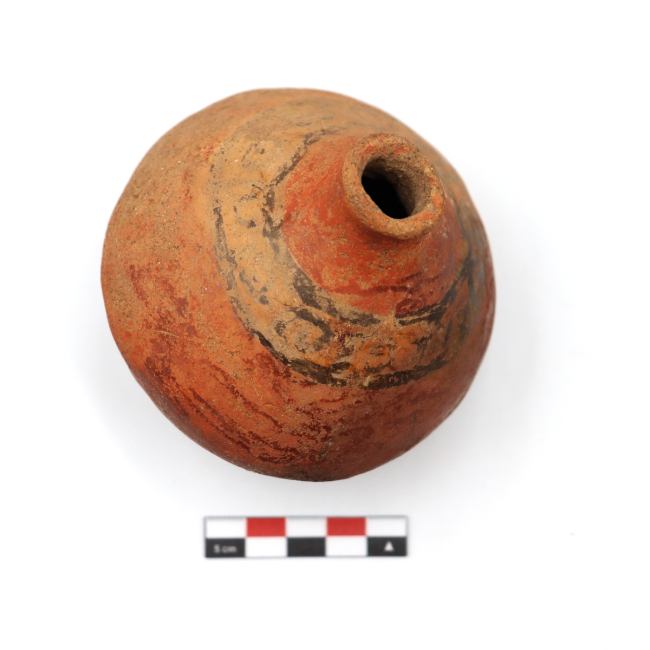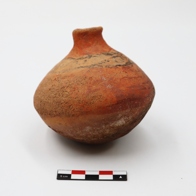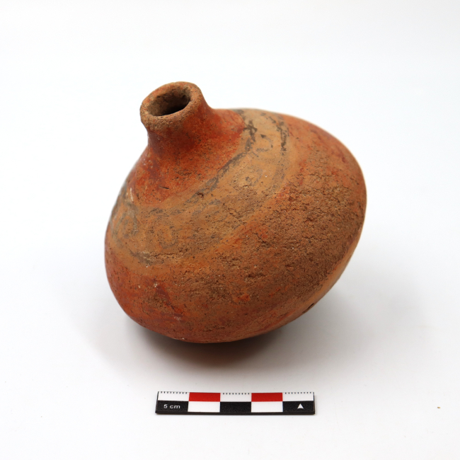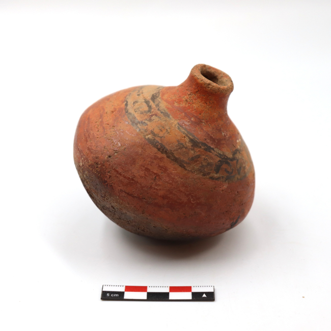Los mates cerámicos de Arica corresponden a una forma cerámica recurrente dentro de la tradición alfarera de los Valles Occidentales, definida por Uribe (1999) como vasijas restringidas de cuerpo globular u ovoide de base apuntada. Tecnológicamente, se elaboran mediante modelado y ahuecamiento, con cocciones mayoritariamente oxidantes y superficies alisadas o pulidas. Esta vasija fue adscrita al estilo San Miguel por su decoración.