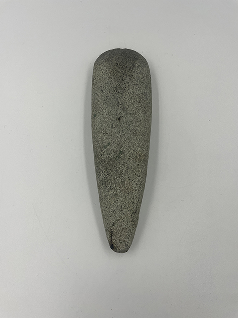 Instrumento de sección transversal oval y longitudinal oval y simétrico. Se observan pulidos en la superficie de la pieza