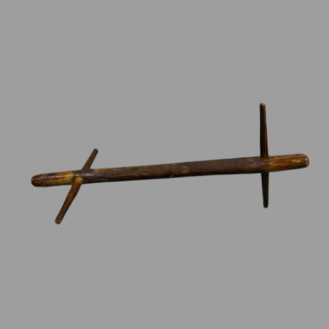 Instrumento de madera, formada por dos barras oblongas unidas en la parte central a través de un vara de sección cirular. Es usada para armar las madejas de lana ya hilada de forma artesanal, con el huso y la tortera.