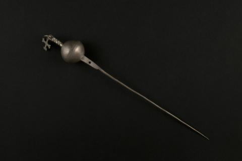 Pieza de plata utilizada a modo de alfiler para sujetar o cerrar la ikülla de la mujer mapuche, además de sostener otras joyas prendedores. Está formada por un segmento alargado o alfiler que ocupa la mayor parte de la pieza a nivel longitudinal. Presenta una esfera en uno de sus extremos, creada a partir de la unión de dos discos semiesféricos de plata previamente martillados. La pieza remata con una cruz de seis puntas redondeadas, adosada a un ojal que sobresale de la esfera, en el sentido contrario a la punta del alfiler, anexada a través de un pequeño eslabón en el ojal que sobresale de la esfera. En el segmento de unión de ambas semiesferas posee decoración rectilínea formada por incisiones paralelas y continuas, cinceladas siguiendo el radio de la esfera.