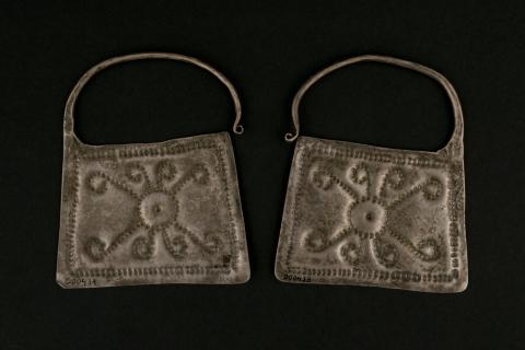 Zarcillos de plata trapezoidales de una sola pieza, elaborados a partir de la técnica de forja y/o martillado.
