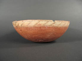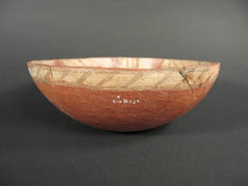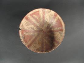 Contenedor de uso doméstico, de forma simétrica, no restringida y de perfil simple. Presenta cuerpo esférico, base plana-convexa, borde recto -directo y labio plano. El tratamiento de superficie es pulido en ambas caras, pintado en negro sobre crema y rojo engobado por exterior y negro y crema sobre rojo engobado por interior. Se encuentra decorado con un diseño complejo, conformado en exterior por una línea circunscrita bajo el borde con una serie de líneas oblicuas y en interior, presenta cuatripartición con líneas quebradas y triángulos con apéndices inscritos.