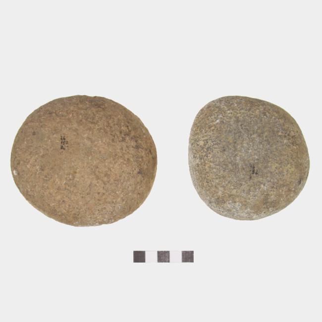 Objetos de uso doméstico de forma elipsoidal no formatizada. Presenta dos superficies activas piqueteadas de perfil plano o levemente convexo. Elaboradas sobre guijarros de color grisáceo.