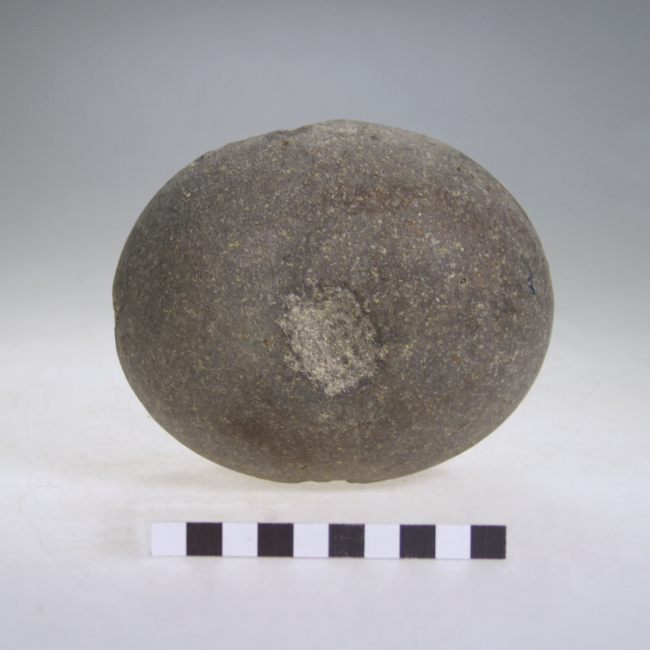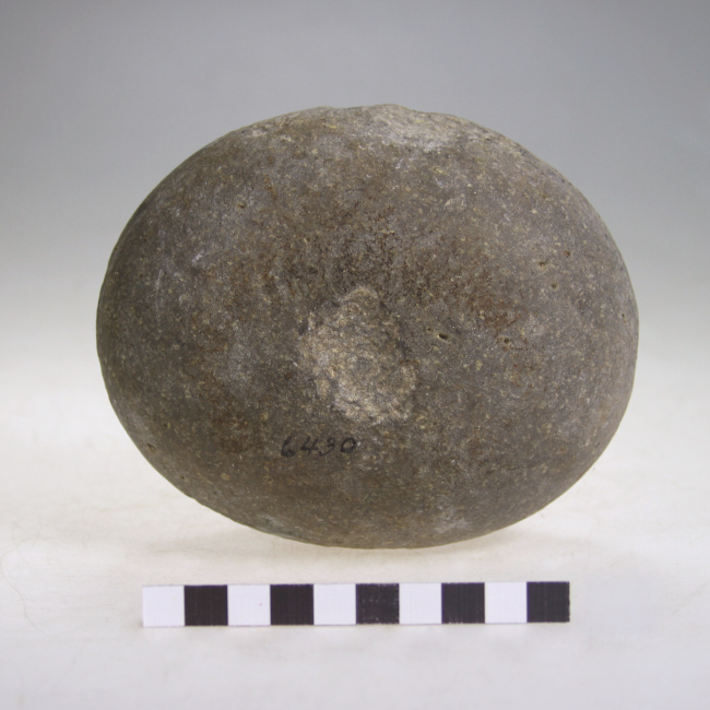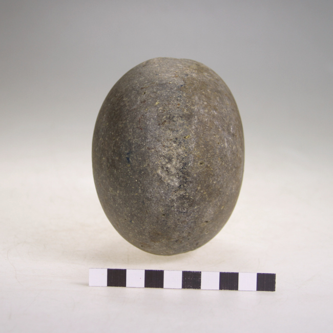 Instrumento de uso doméstico, martillo y/o yunque de forma elipsoidal. Elaborado a partir de gran canto rodado con horadaciones biconvexas en cuatro caras, realizadas por medio de piqueteo o golpes indirectos.