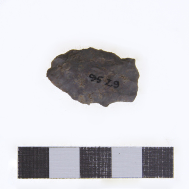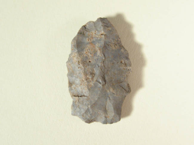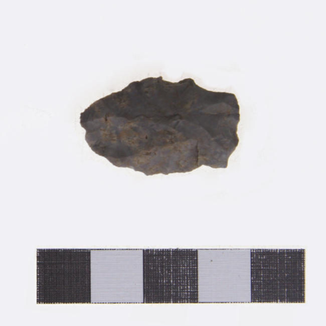 Objeto de uso doméstico de talla bifacial de forma lanceolada pedunculada, de base pedunculo paralelo y sección biconvexa. El pedúnculo está fragmentado en su extremo proximal.