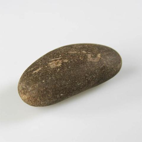 Objeto de forma ovalada. Color café. Presenta desgaste en toda su superficie, producto de su función de pulir.