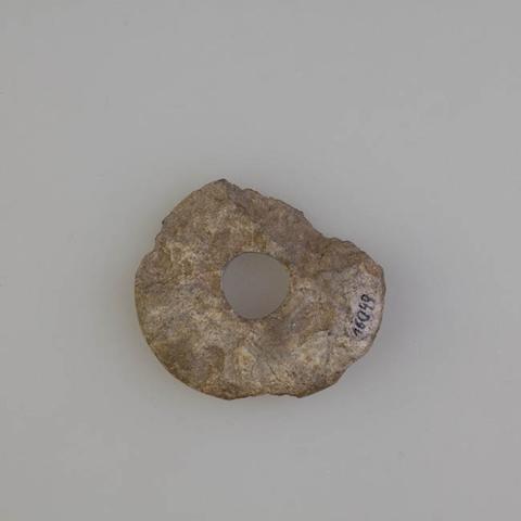 Objeto de uso doméstico elaborado en combarbalita de color gris, de forma discoidal y sección biconvexa. Presenta una central perforación cilíndrica. Su uso está vinculado a la actividad textil, sirviendo como peso ubicado en la parte distal del huso, ayudando al proceso de hilado.