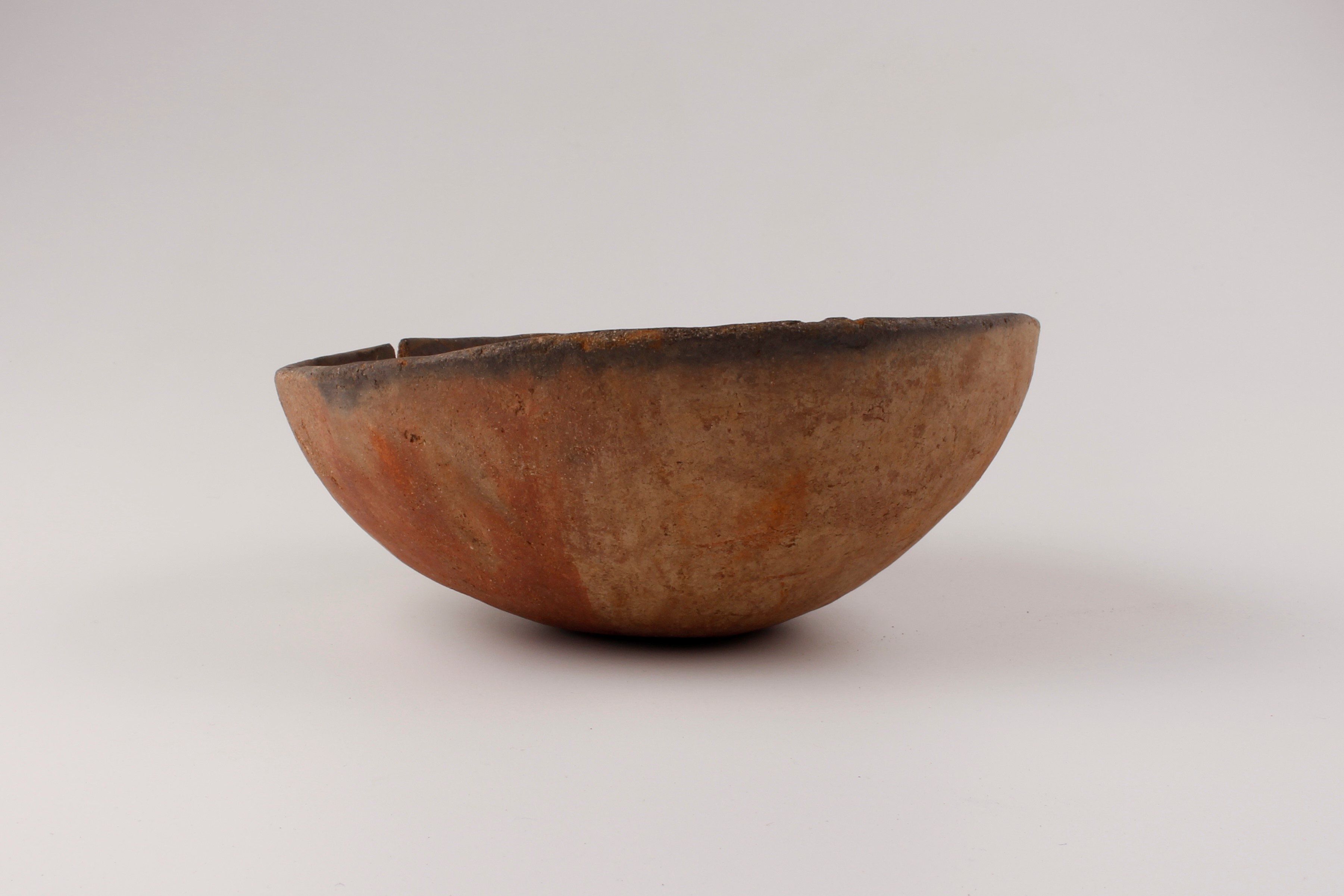 Escudilla Ánimas II. Contenedor abierto de perfil simple, de cuerpo hemisférico (subglobular) y base curva. Vasija no restringida de contorno simple, sin diferenciación entre paredes y base. Presenta una hendidura circular de 28 mm aproximadamente en el sector central de la base que genera una protuberancia en la superficie interior. Tratamiento de superficie con alisado y engobe. En cuanto a su decoración, consta de cuatro campos triangulares de color blanco (Atlas Munsell: White Page: 10 YR /2 very pale Brown) y rojo (Atlas Munsell: 10 R 4/6 red) alternados que rotan en torno al centro de la vasija. Superficie interna negra (Atlas Munsell: 2.5 Y 2.5/1 Black) probablemente por una quema en atmósfera mixta. Asociado a camélido 24, en la fosa del individuo 134, adulto joven masculino.