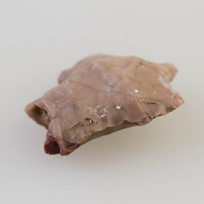 Objeto de uso doméstico elaborado sobre lasca de sílice semitranslúcido de color rosado. Presenta forma triangular, sección biconvexa y posee un extremo aguzado, el cual permite, mediante movimientos de rotación, llevar a cabo perforaciones sobre materiales blandos como cuero, hueso o madera. Probablemente este instrumento fue elaborado sobre una preforma bifacial o punta pedunculada, donde el pedúnculo fue aguzado para cumplir la función de perforar. Se encuentra en estado avanzado de uso, porque el extremo aguzado es pequeño.