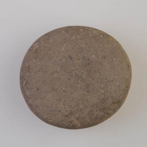 Objeto de uso doméstico, elaborado sobre un guijarro de andesita de color café y de forma ovoidal. Presenta dos superficies pulidas de perfil plano y convexo. En el borde perimetral se encuentra triturado y alisado.