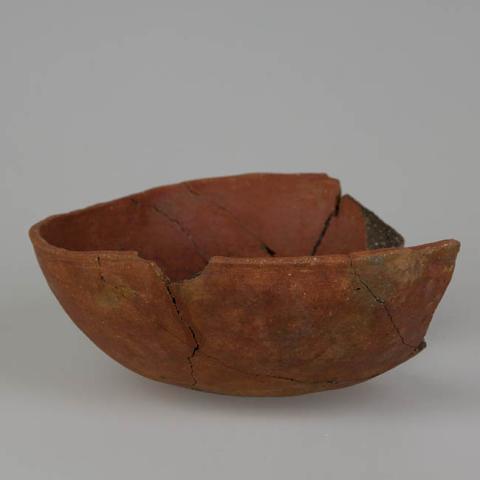 Contenedor de uso doméstico, de forma simétrica, no restringida y de perfil simple. Presenta cuerpo esférico de base cóncava, borde recto, y labio plano. El tratamiento de superficie es café alisado con engobe rojo por exterior y café alisado por interior. También es posible apreciar huellas de uso relativas a la exposición de antiplásticos por erosión en la base.