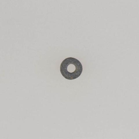 Objeto ornamental de uso personal elaborado en piedra talcosa de color gris oscuro, forma discoidal y sección transversal plana. Presenta una perforación central cilíndrica.